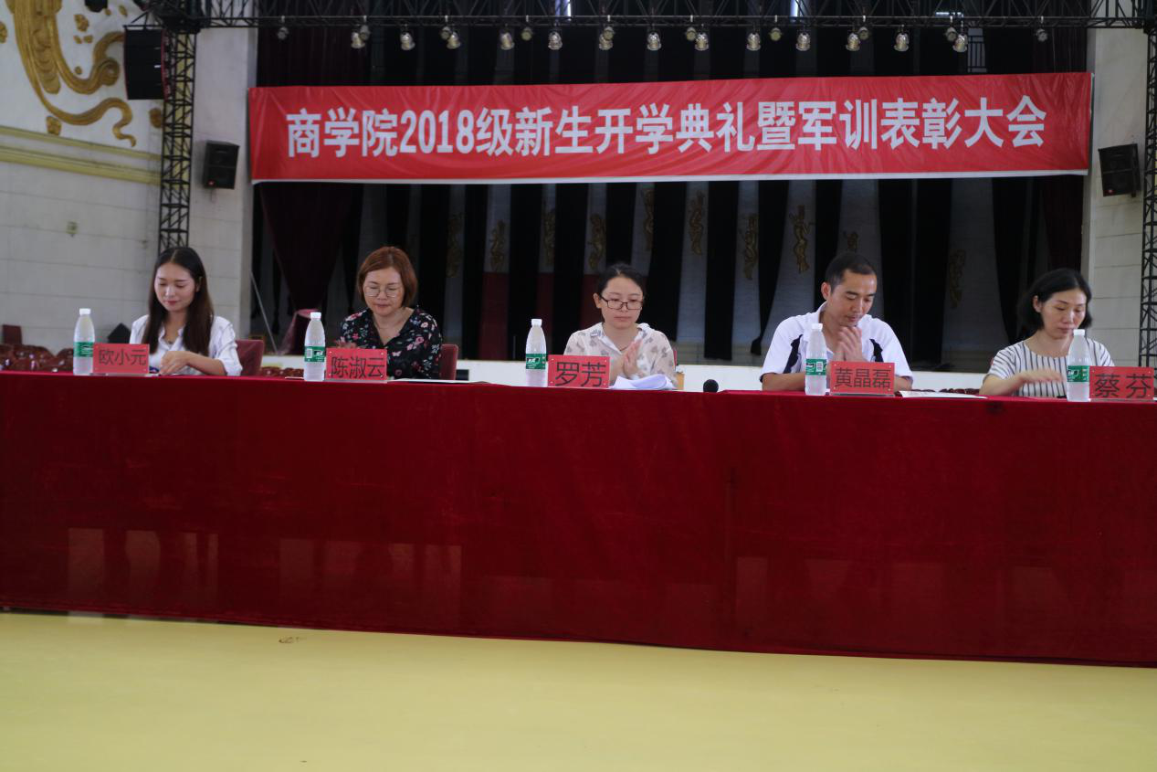 (太阳集团tyc5997新媒体讯,记者 黄强)为了进一步增强我院学生的凝聚力,欢迎全体2018级新生的到来,2018年9月13号中午,我院在霓裳宫隆重举行太阳集团tyc59972018级新生开学典礼暨军训总结表彰大会。太阳集团tyc5997党总支副书记黄晶磊,太阳集团tyc5997副院长陈淑云,太阳集团tyc5997副院长罗芳,我院院办主任蔡芬,太阳集团tyc5997学工办副主任欧小元出席大会,2018级各班班主任、辅导员以及2018级全体新生参加会议,大会由太阳集团tyc5997学工办副主任欧小元主持。