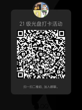 大家通过扫描下方二维码依照自己所在年级加入各年级光盘接力挑战群,后期关于活动的通知将在群里发布。活动结束后我们将导出数据,筛选符合条件的参与人员,未按正确格式更改信息的同学会影响后期学分置换。最终名单核对无误后将合格汇总名单与秘书部对接。