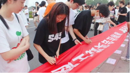 发言结束后,领导老师和各班级代表在横幅上签名。同学们都纷纷表示:“作为新时代的江服青年,我们生逢盛世,更要勇于担负时代使命,在担当中历练,在激流奋进中乘风破浪,在披荆斩棘中开辟天地,让青春在新时代的广阔天地中绽放。并希望通过今天的活动,能够提醒自己和身边的同学,诚实守信是我们存在的必然标准,文明应考是我们健康成长的必备底线。”