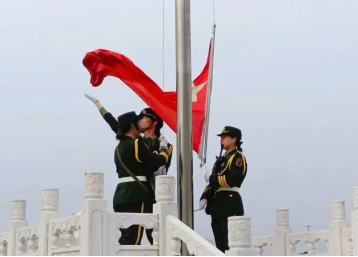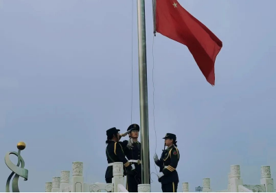 迎着朝阳,国旗护卫队迈着铿锵的步伐来到国旗台下,全场一片肃静。在激昂的《义勇军进行曲》中,升旗手振臂一挥,鲜艳的五星红旗徐徐展开,在全体师生的注目下迎风飘扬。