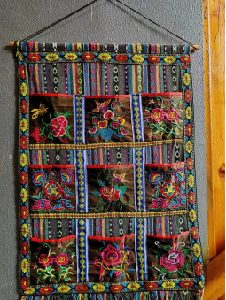 品畲族文化之美,促民族文化交流。“红心石榴籽籽同心”暑期社会实践团队一进入新时代文明实践所民俗馆的大门映入眼帘的是巨大的“畲”字介绍图和畲族的历史起源及发展。随着过道往右依次参观了畲族的工艺、饮食、语言方面的介绍。畲族人民生于大山,居于大山,畲族民间的传统手艺也取材于大山,看着民俗馆展示的畲族服饰和刺绣工艺,我们能透过纺纱织布的缝隙、沿着那刺绣的纹样,感受彩带上鲜活的图案。