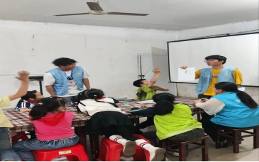 志愿者们对接成功后便着手准备开展活动。志愿者们以防火防溺水为切入点开展本次活动,生动详细地为孩子们讲解防火防溺水等相关知识,进一步提高孩子们防火防溺水的安全意识。安全知识课堂结束后,志愿者们带领孩子们开展游戏课堂。