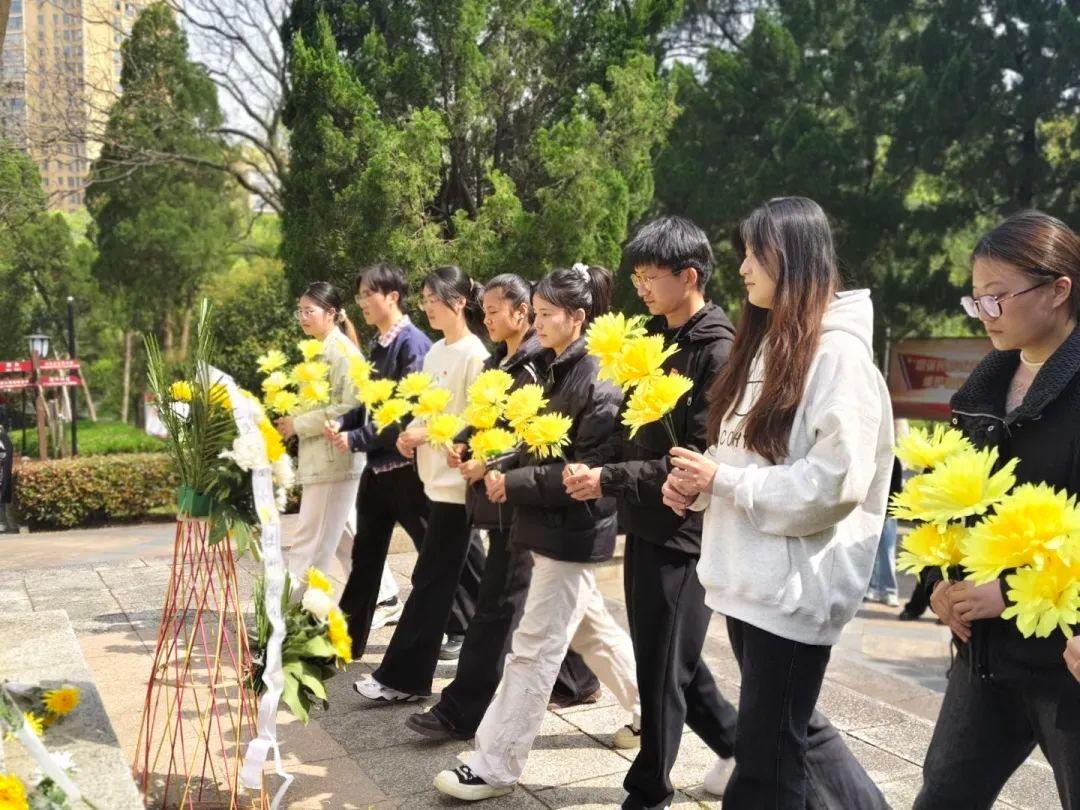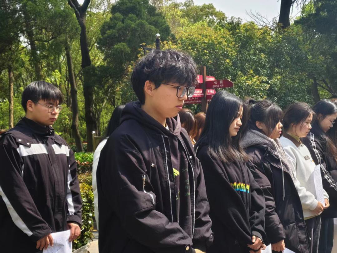 活动在庄严的国歌声中拉开序幕,同学们站立在革命烈士塔下,在分团委副书记王幸俊的带领下共同学习了习近平总书记关于缅怀英烈、致敬英雄的重要论述。随后,退伍军人黄俊同学组织同学们向革命烈士纪念塔行鞠躬礼并默哀一分钟,以寄托对革命先烈的无限哀思。