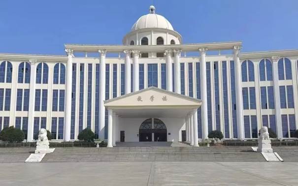 它巍峨矗立在校园中央,宛如一位庄重威严的大家长,时刻守护着校园。它以现代风格傲然挺立,白色的外观在阳光下熠熠生辉,仿佛自带光芒特效。