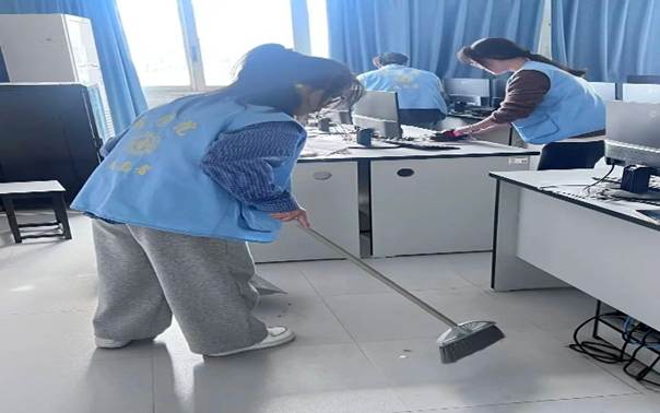 走进教室与实训室,毕业生们正以专业且认真的态度开展劳动实践。实训室整理组秉持严谨态度,不仅对实验设备进行清洁保养与调试、整理实验耗材、规范仪器摆放,还对实训室环境卫生进行全面清扫,同时在教室内仔细检查并更换损坏的照明灯具、桌椅配件,对黑板、讲台进行彻底清洁与消毒,分类整理遗留的教学资料,确保教室恢复到最佳使用状态。他们用专业的技能和认真的态度,为学弟学妹们留下良好的学习环境。