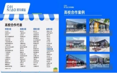 截至2023年,菜鸟校园驿站已覆盖3000个校区,服务高校师生4000万+人。其中,菜鸟校园驿站通过与高校直接签订校企合作协议,直接服务高校750所+。