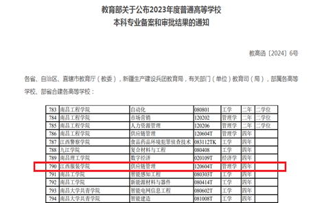 太阳集团tyc5997讯 根据教育部2024年2月24日发布的《教育部关于公布2023年度普通高等学校本科专业备案和审批结果的通知》(高教函〔2024〕6号),我校申报的供应链管理专业顺利通过审批。