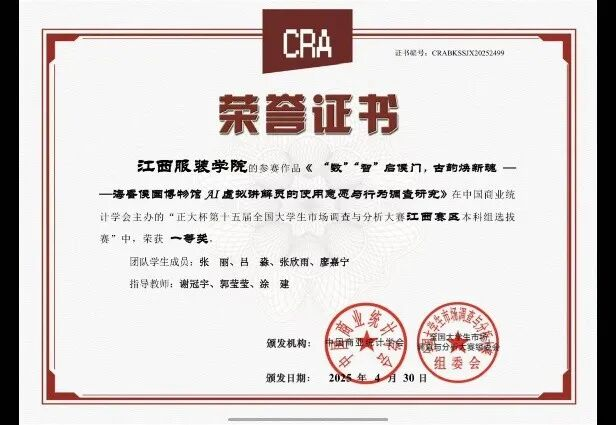 2025年获得正大杯第十五届全国大学生市场调查与分析大赛江西赛区一等奖。